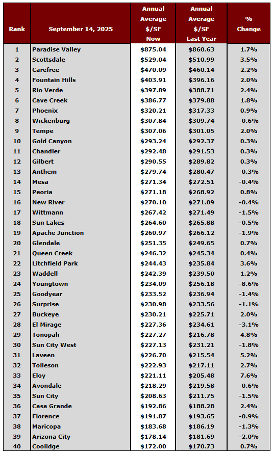 Metro Phoenix City Rankings for September 2025